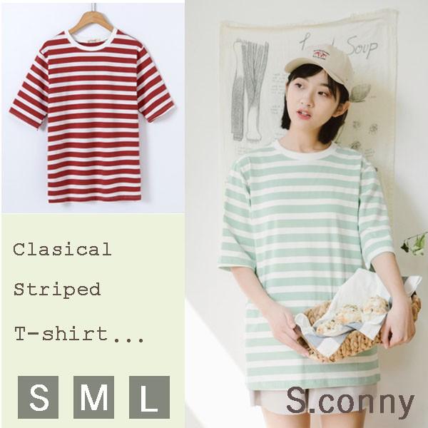 トップス レディース 夏 カットソー 半袖 七分袖 五分袖 ボーダー おしゃれ かわいい シンプル ティーンズファッション 中学生 女子 私服 韓国 T047 S Conny 通販 Yahoo ショッピング